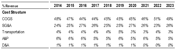 Uncertainty in Margin Improvements: Our valuation assumes certain margin improvements; however, if these improvements are not realized or fall short of expectations, we estimate that our stock valuation could decline by approximately 11%.