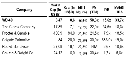 WD-40 is a well recognized trademark, however the stock seems overpriced