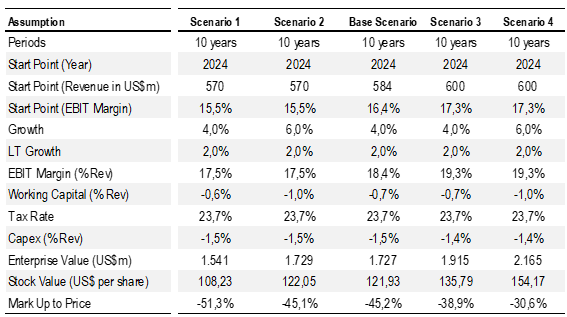 EBIT Margin Improvement: We expect EBIT margins to improve to around 17.5-19.3%, supported by the normalization of raw material costs, price increases, and operational efficiencies. The company has already announced a gross margin improvement of 2 percentage points, from 53% to 55%.