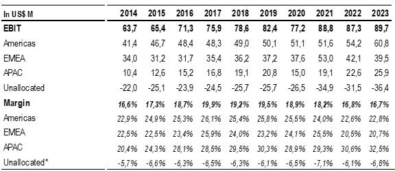 APAC Market Dynamics: In high-growth environments fueled by increased market share in the APAC region, we anticipate a decrease in EBIT margins to levels similar to other regions. This may occur if the company shifts from a full-commercial model to a distribution-focused one.